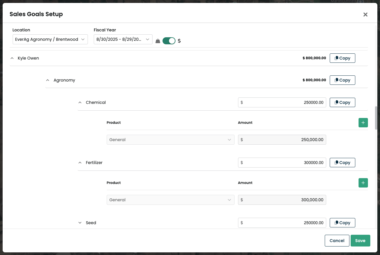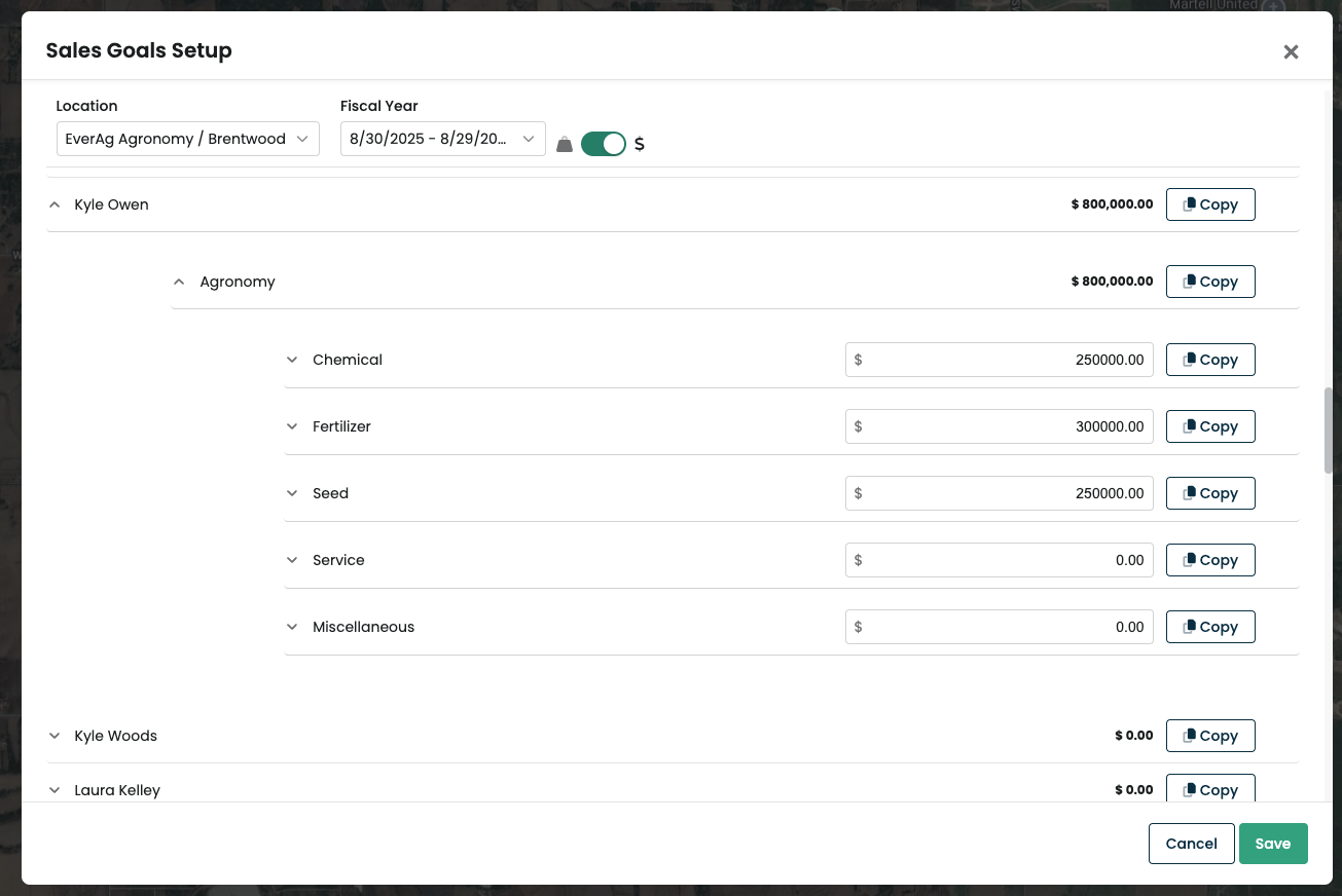 Sales Goals Setup